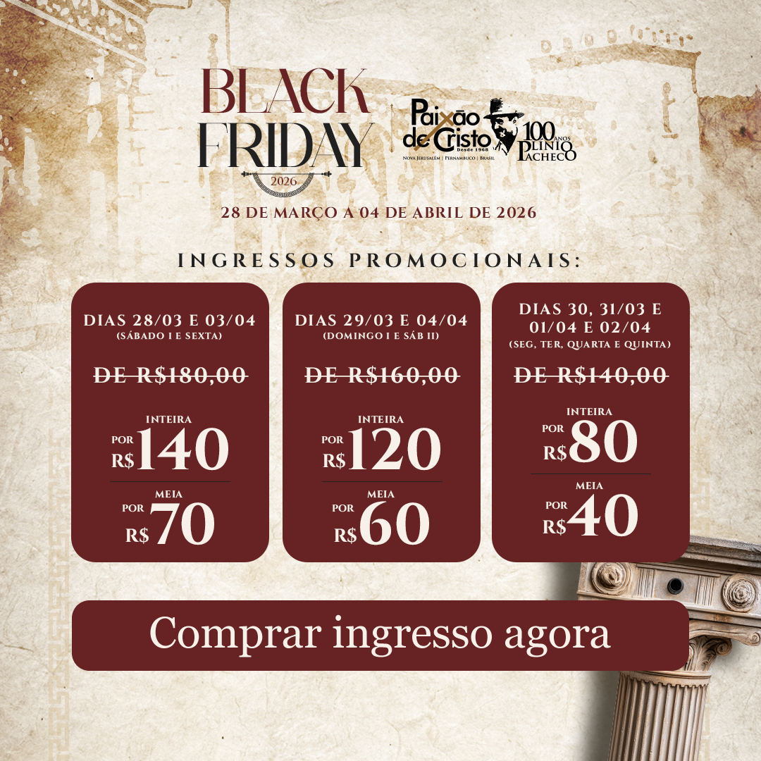 • Para o dia do espetáculo, a venda de ingressos on-line só será possível até as 12:00 do mesmo dia, no site oficial www.novajerusalem.com.br e as vendas continuam normalmente nas bilheterias do teatro de Nova Jerusalém, que funcionam das 08:00 às 19:00 e nos pontos de venda credenciados